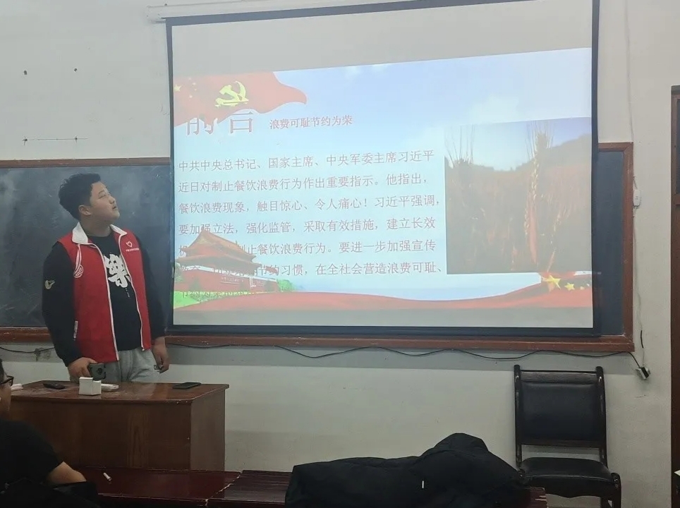 志愿者们在活动前收集了关于浪费食物的现象,数据资料,以及关于勤俭节约传统美德的真人真事。做好了宣传倡导勤俭节约—光盘行动的倡议书,以及宣传所需的ppt。以一种更直观的宣传形式表达给同学们,并于2021年3月5日晚自习在各个班级开展此次志愿活动。