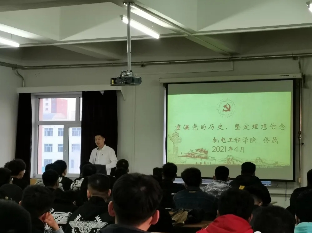 为了能够让每一名积极分子都能在历史中汲取精神力量,从而为实现“中国梦”注入无限生机和活力。根据机电工程公司党总支的工作安排,2021年4月7日晚18:30,机电工程公司团总支书记佟晟老师在知行楼520教室为同学们上了一次题为“重温党的历史,坚定理想信念”的讲座。