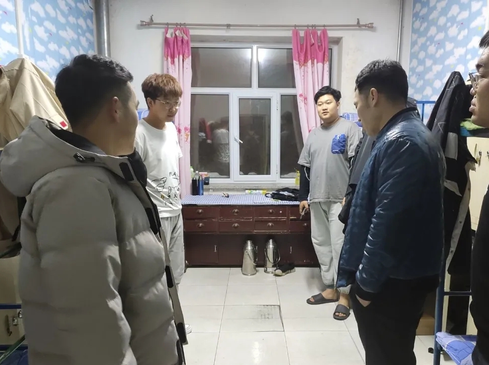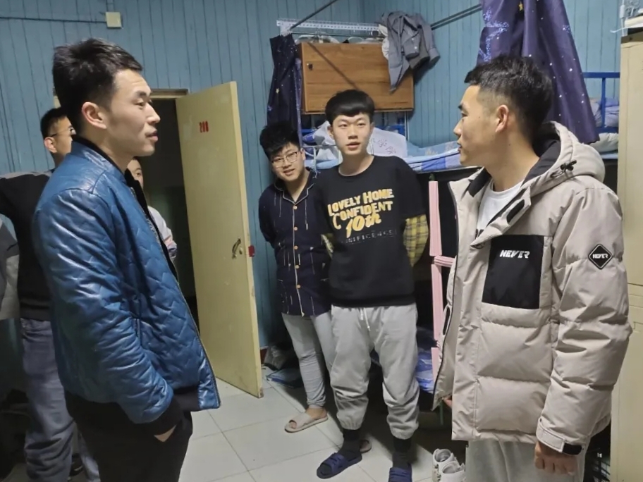 走访过程中,佟晟老师仔细询问同学们生活和学习状况。针对使用违禁电器、抽烟喝酒等宿舍安全隐患进行逐一排查。并叮嘱同学们要积极自觉维护宿舍安全与卫生,定期通风消毒,注意饮食和起居健康,营造健康向上的宿舍文化,注重预防诈骗的宣传。要养成良好的作息习惯,多参加户外体育锻炼,以积极饱满的状态投入到学习、工作和生活中。