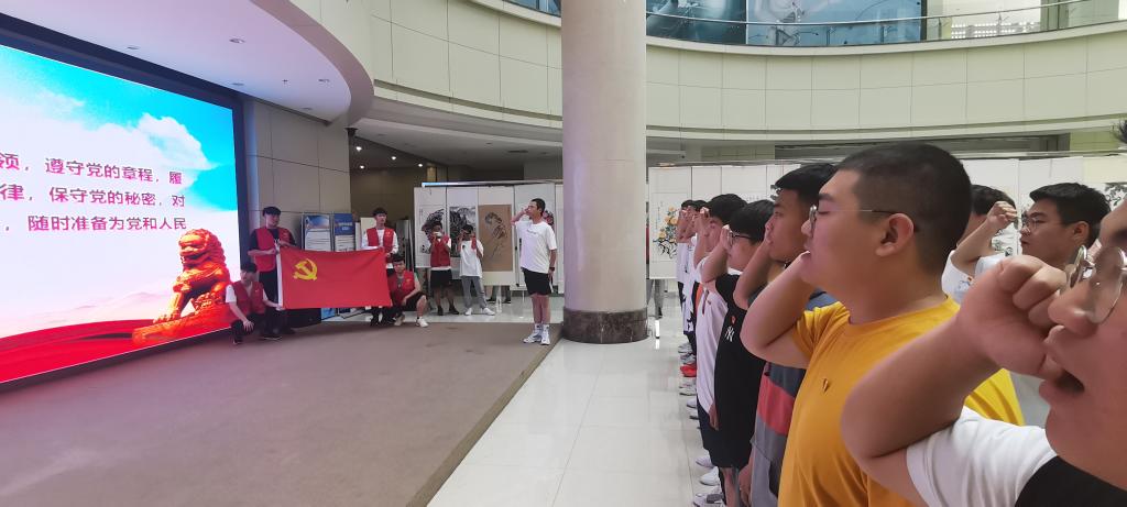 参观过程中,大家一边听讲解员讲解科技馆内部相关简介,一边参观并体验了陀螺仪、磁悬加速仪、科学探秘展厅、4D电影等科技展品。深刻感受科技迅猛发展为人类进程和人们的日常生活带来的巨大变迁,真切感受到在党的领导下中国科学技术取得的巨大进步。接着,各位党员在一楼大厅前集合,面向鲜红的党旗,重温入党誓词。