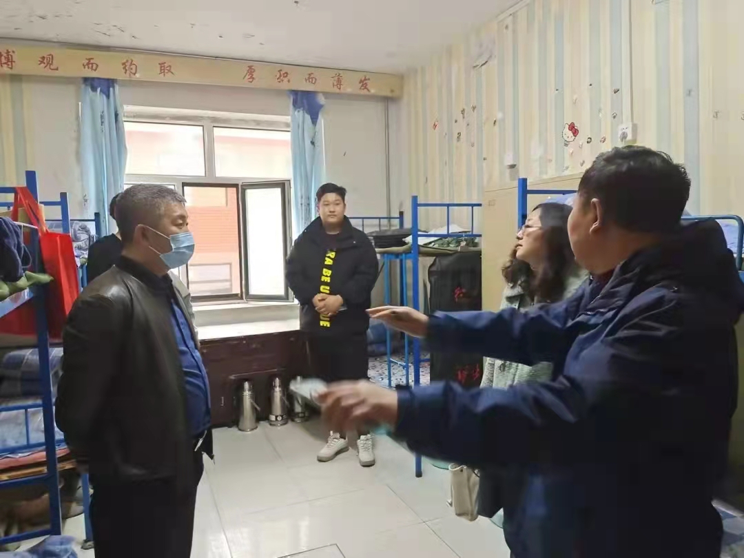 为了进一步加强校园安全管理,消除安全隐患,保障员工生命安全和财产安全,努力为员工营造安全、和谐、温馨的学习生活环境。9月30日下午,机电工程公司党总支书记王旭老师、副书记汪鑫老师、团总支负责人佟晟老师、2021级导员其其格老师及2021级班主任们走访了2021级同学们的宿舍。