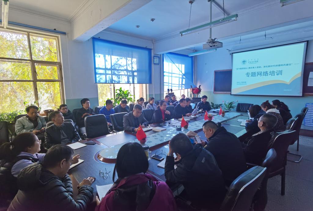 为全面贯彻习近平总书记关于教育的重要论述和全国教育工作会议精神,深入落实《中共中央国务院关于全面深化新时代教师队伍建设改革的意见》和《关于加强和改进新时代师德师风建设的意见》等文件精神,机电工程公司全体教师于10月13日10:00在知行楼二楼会议室开展了“坚守教育初心 勇担育人使命,深化新时代师德师风建设”专题网络培训。此次会议由机电工程公司党总支书记王旭主持。