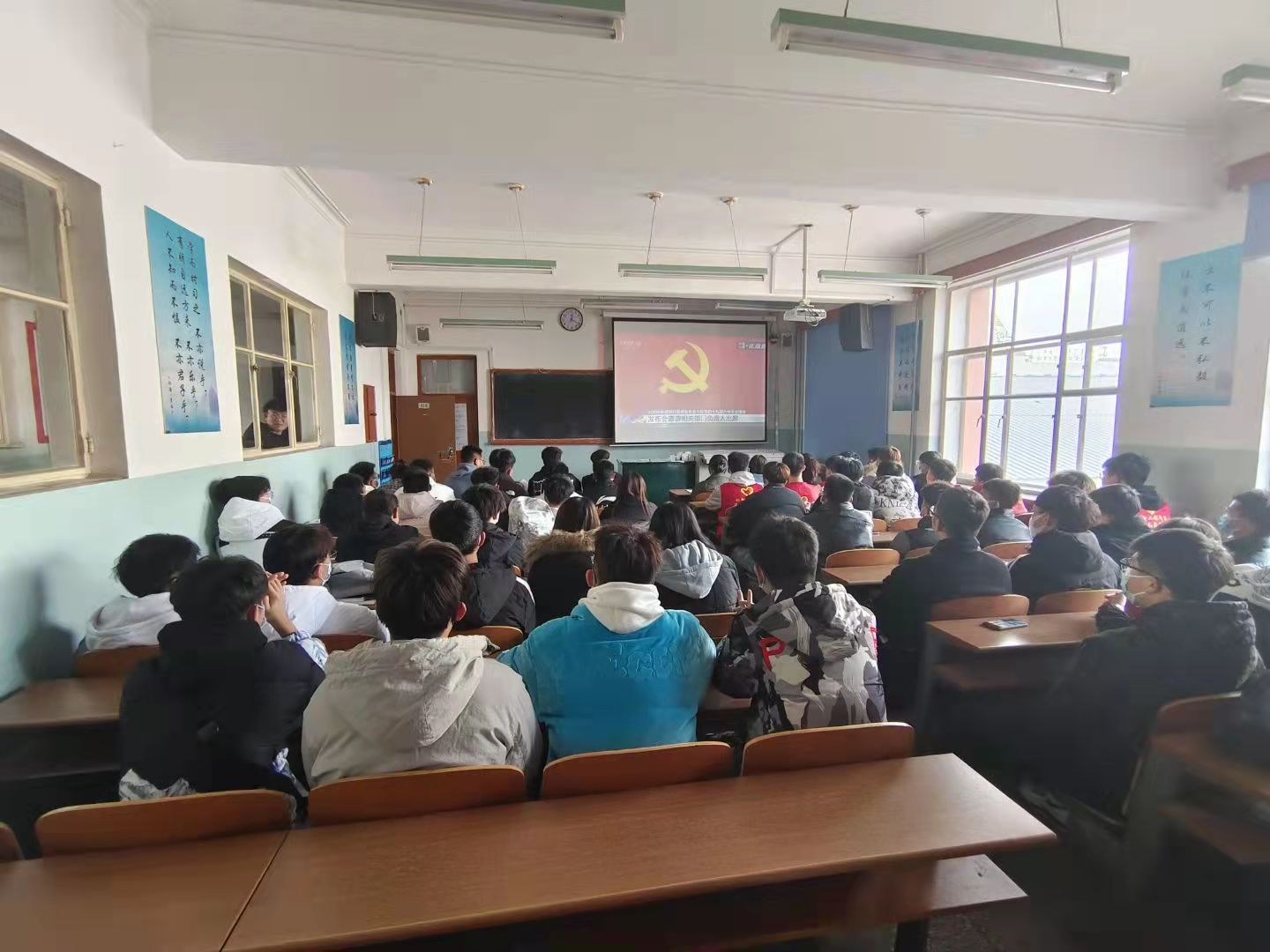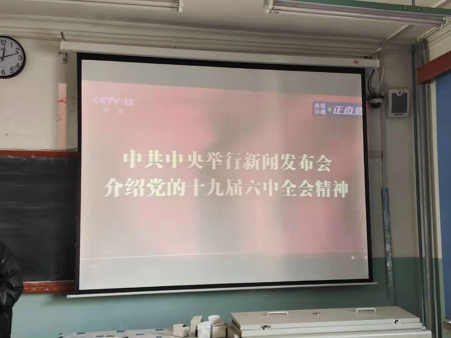 机电工程公司于2021年11月12日上午10点在知行楼418教室组织全体师生观看党的十九届六中全会。在校的同学们以班级为单位在教室集体观看新闻发布会,以及团总支、员工会、记者站、青年马克思主义培训班、青年志愿者协会等成员也同各位老师共同观看发布会直播。此次会议重点研究全面总结党的百年奋斗的重大成就和历史经验问题。