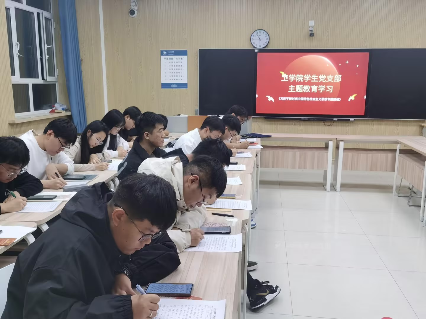 为深入贯彻落实主题教育活动在支部落实落地,11月1日下午3点,谈球吧党总支员工党支部员工党员在崇文楼B421教室,开展了学习贯彻习近平新时代中国特色社会主义思想主题教育集中学习研讨会,谈球吧党总支副书记吴晗作为普通党员参加了学习。