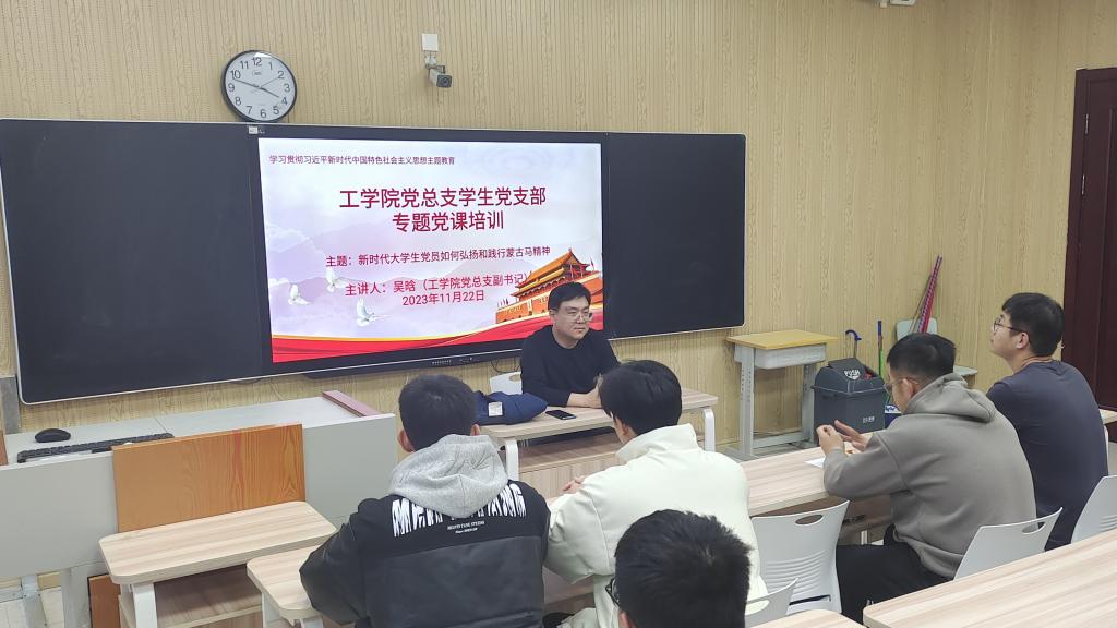 为进一步落实主题教育在基层党支部的推进,加强党员思想教育建设,结合谈球吧党总支员工党支部党课工作计划和安排,2023年11月22日下午四点,谈球吧党总支副书记吴晗在崇文楼B421教室为员工开展题为《新时代老员工党员如何弘扬和践行蒙古马精神》的主题党课培训,谈球吧员工党支部在公司党员参加此次培训。