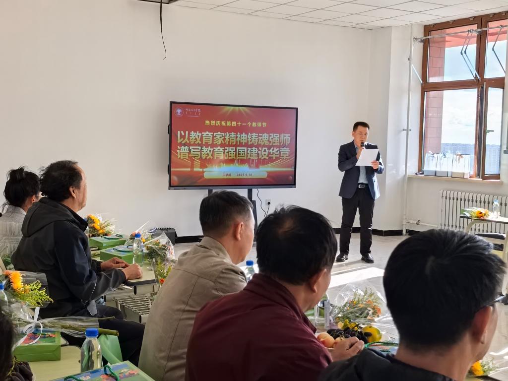 9月10日下午,谈球吧在产教融合楼302室召开庆祝第41个教师节座谈会。会议主题为“以教育家精神铸魂强师,谱写教育强国建设华章”,公司领导班子成员及全体教师参加会议。会议由公司副经理吴淘锁主持。