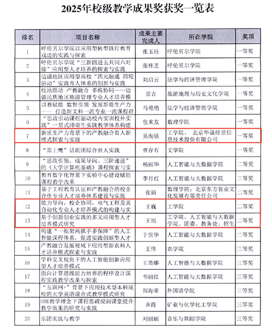在2025年校级教学成果奖评选中,谈球吧取得了令人瞩目的成绩,共荣获一等奖1项、二等奖2项。